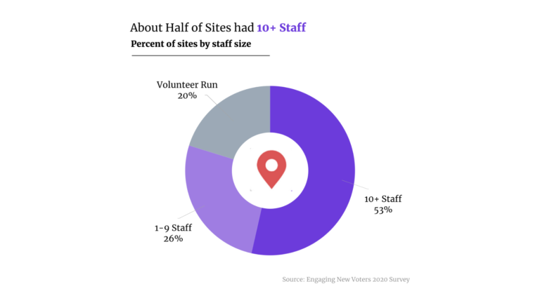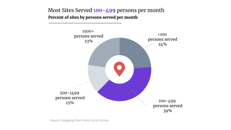 We launched a survey to sites in Colorado, Michigan, Ohio, North Carolina, and Pennsylvania to better understand their experiences with implementing voter engagement. Just over 100 of the sites completed the survey (68%), and they collectively were the source of 5,295 voter contacts analyzed.