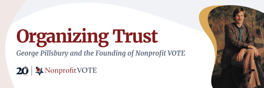 Much of that story is centered on our founder, George Pillsbury. Long before Nonprofit VOTE existed, George was drawn to questions of participation, trust, and how change actually happens. Again and again, his work pointed to the same conclusion: democracy is strongest when it is built through service and grounded in the everyday relationships nonprofits have with their communities.